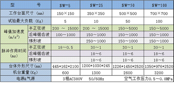 SW系列沖擊試驗機采用重力自由落體的工作原理,來模擬產品的實際使用環境。采用氣液增壓,強力摩擦抱閘防二次沖擊制動機構,試驗精確且安全可靠。適用于航空、航天、船舶、兵器、電子、汽車、家電及交通運輸等領域的抗沖擊試驗。通過選擇不同的波形發生器,可進行半正弦波,后峰鋸齒波或梯形波等沖擊波形之沖擊試驗。